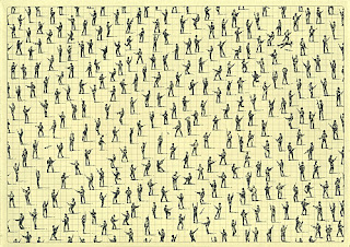 "Through painting, music, installation and drawing he tries to bring the mundance into the bizarre, the ordinary into the extraordinary. The daily life exaggerated to saturation gives these simple subjects a different value, where the complexity of our world rubs in the absurd and in the poetic."